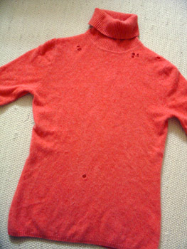 When I pulled this sweater out of storage this Fall, I was horrified to find the holes! Whatever sort of nasties I had in the closet (we've since had a giant clean up!) had very particular tastes, since they ignored all the wool sweaters and feasted only on the cashmere. After grieving a little for my favorite sweater, it occurred to me that there was plenty of good fabric still left there which I might be able to turn into a dress for wee one. I'm in the process of felting the sweater down a bit and am looking for information and inspiration from the book, Sweater Renewal: Felting Knits into New Sweaters and Accessories