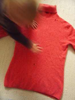 Thanks for the tips Kate and Julie! Suzanne, the Sweater Renewal book says that cashmere should felt well (as long as there's at least 85% natural fibers in there). But if it doesn't, I can just sew up the dress with the fabric from the sweater as is. My only concern would be weather it would shrink up when I washed it, but if it didn't do that when I TRIED to felt it, I should be home safe.