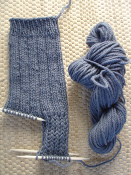 Nancy, the first pair of socks is done in Yarn for Sox on a US7. I used Ann Budd's basic sock pattern from Knitter's Handy Book of Patterns done in a 3x1 rib.