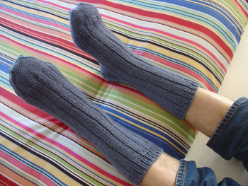 Hubby's second pair of warm winter socks are done! The Rowan Magpie is thick and cozy, just right for the socks that hubby likes to wear around the house. Hubby washes all his socks in the machine(!) and the previous pair of Magpie socks I made him felted up ever so slightly, making them even thicker and warmer. The slight felting also strengthened the heel, making those the socks that lasted the longest. Here's hoping that these turn out to be as snuggly and as sturdy as the last pair!