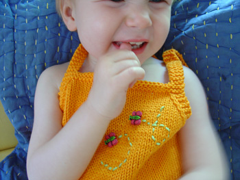 I'm glad I gave up on the intarsia butterfly I'd planned for wee one's Barefoot Knits tank. Because these butterflies are so much better!