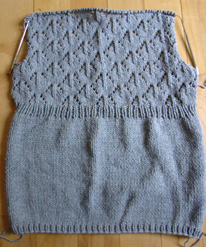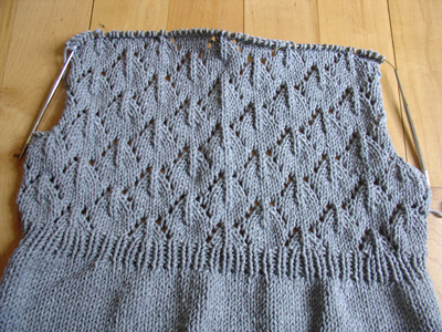 I'm thoroughly enjoying the knitting so far. The stockinette was lovely - I do so enjoy a good eight or nine inches of stockinette! The lace pattern is delightful: simple but with a striking result. And I'm having fun. It's so good to be back knitting again.