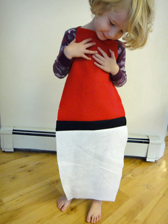 Hehe - she looks so amused at the part-Pokeball, but SO FORLORN at the half-hula skirt. She has her priorities. ;-)