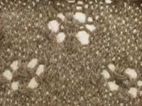 Kerrie asked what I was going to do with the alpaca I reclaimed from the abandoned cowl (see Tuesday's post). Orginally, I wanted to make a cardigan. Despite the small gauge of the yarn (US3s), I'm still leaning in that direction, since the alpaca is very warm and I fear a sweater would be too hot. I also want to try doing a lace pattern. I like the lace design in Jess from A Yorkshire Fable, and so knit up a little swatch to give it a try.