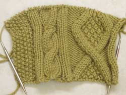 Chickie is knitting up wonderfully. I'm in the middle of the waist shaping on the back. This Peace Fleece yarn is a genuine pleasure to work with. It feels great in my hands and is really beautiful.