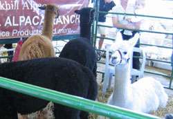 We are having beautiful fall weather up here in New England. If it doesn't get cold soon, we may end up visiting every farm in the area! This week we went to the agricultural fair at Topsfield, Mass. First thing we found were the alpacas. That's what happens when you let mommy lead the way!
