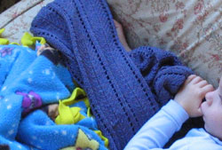 A couple of months ago, we lost S's little blankie that I knit for him when he was an infant. The big blankies aren't allowed to leave the house, but the little ones were knit so that the boys could bring them along in the stroller or car when they needed to. And when they were 1, they needed to a lot. Well, little blankie got lost recenly at the mall. S got over the loss very quickly, accepting my explanation that it was now "lost" and he still had his big blankie. He's repeated this camly several times over the last couple of months, but never seemed upset about it. Until this week.