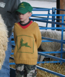 Yes, the animals and the visitors were out in their finest woolens this weekend. Of all the incredible knitted sweaters and garments that I saw, my favorite was this kid's sweater. The juxtaposition of fine handknitting and large harvesting equipment just tickled me somehow.