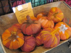 I did enjoy seeing the needle felted crafts made with roving. Everyone seemed to be selling these incredible silk scarves with sections of free form needle felting. And I particularly liked these needle felted pumpkins. Alas, I could not come up with a reason that I needed to buy one.