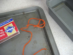 metal baking dishes, matches, yarn, and plenty of water at the ready