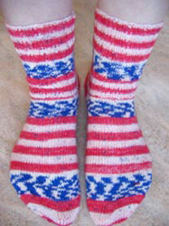 First, fellow sockapal2zer, Kelly from New Orleans, who wrote to me to let me know that she won't be able to return to her home for many weeks and ask that her socks be sent to another address, added that she would urge everyone to give what they can to the relief effort for the victims and refugees of Katrina. You can join in with other knitters donating to the Red Cross through the Give a Little project.