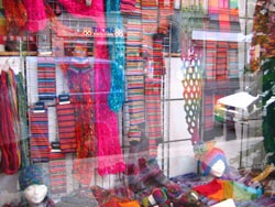 A couple of days later, we made it out to Kreuzberg - hubby got a Döner and then I visited Fadeninsel. What a great yarn store! They had an incredible selection of GGH yarns - you know the ones you've only seen in online stores and the Rebecca magazine. They also had a mountain of Naturwolle (swoon!) and some lovely hanks of lambswool from which they'd made really cool chunky scarves - four strands of heavy worsted weight lambswool in bright coordinating colors knit together in fisherman's rib (a very popular stitch in Germany). By the way, big scarves are SO in here. I didn't see one poncho or capelet in Berlin, but every other woman practically had a giant wide scarf with tassles wrapped around her neck. (Why didn't I bring my clapotis?!)