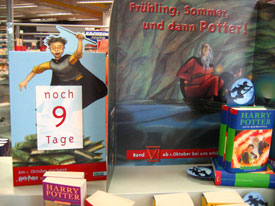 Harry Potter fever is alive and well in Germany! In Hugendubel (the coolest name for a bookstore EVER!), they are counting down the days to the release of Book 6 in German.