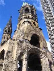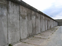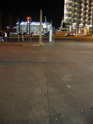 Although most of the Wall is gone, it's path is now marked into the sidewalks. The diagonal marks here, leading up to a single wall segment, show where it cut through Potsdamer Platz.