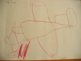 The first thing one of them has drawn that has actually looked like something. I was so proud that I got all teary-eyed. Awww. Plankton would hate that.