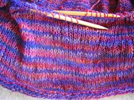 Johanna is done with her first Koigu anklet (check out the cool cuff!)