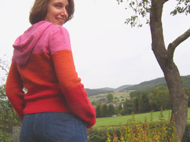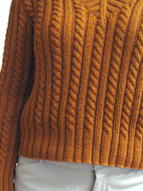 Anne finished her weasley - she used Jo Sharp Silkroad Aran Tweed and knit it top down using Cabin Fever's "Knit it from the Top" pattern #602 (she even did the intarsia in the round!)
