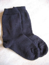 The Supermerino was fabulous, knitted up nice and even, as always. I did a short-row heel, but opted for a standard toe. Don't know why, just to be different. I hope they fit my pal. I'm pretty sure she'll like the color though. (Oooh, the hints! Who could it be?)