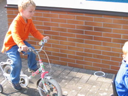 Learned to ride a "big bike". With training wheels, versteht sich.