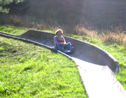 Went down a mountain in a toboggan. Seriously, you had to take a ski lift to get back up to the top. (See the lift in the background?)