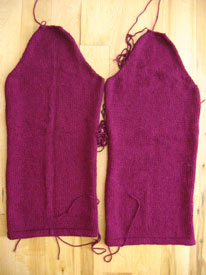 Once again I was a little overzealous on the length. Oops! Oh well, no point in fixing it now since I still may have to rip both of them back. Until I finish the front and can sew in one of them, I am not going to swear by the length of either.