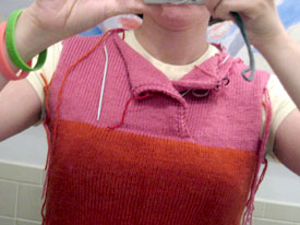 Next, a little HP knitting controversy. Have you seen the picture from the upcoming Goblet of Fire movie of Cho wearing her school scarf? There is some discussion that it looks like a 1x1 rib, instead of the stockinette that all the Prisoner of Azkaban patterns call for. I have to say, I'm not convinced. Just looks like machine-knit stockinette to me.