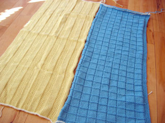 Now this strip of B's blankie, I really like! The blue Cascade 220 Superwash is totally cool and the pattern of simple squares is very neat and crisp looking.