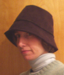 I was standing in line at the department store with some Christmas purchases and trying to keep the boys amused by trying on hats. Well, I slipped on this bucket hat and caught a glimpse of myself in the mirror. Gosh darnit, if that hat didn't look good. And better than any hat that I could knit. I couldn't put it back. (Forgive me, Bonne Marie and Becky!)