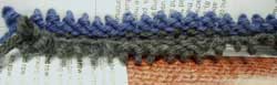 Row 1: With color A *K1, bring yarn forward, slip next stitch purlwise, bring yarn back*, repeat from * to * across the row. DO NOT TURN WORK!