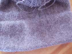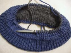 After several days, I finally managed to knit enough of hubby's hat so that I could turn up the hem. I wanted the hem to be nice and deep, covering his ears entirely. That meant that I had to knit enough for practically a whole hat just to make the hem.