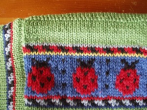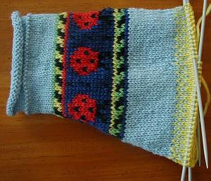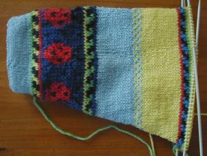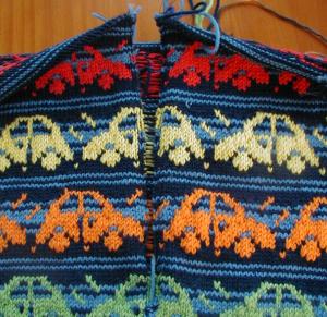 Here's sleeve number one of the first Dale bug sweater.