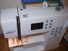 I did it! I cut my first steeks. After finishing up the knitting on the body of the Dale sweater, I was really excited about cutting the steeks open and seeing how the neck would turn out. I also have one sewing class under my belt, which means that I knew how to thread my machine and run a line of stitches. I figure that and a bit of chutzpa is all you really need, right? OK, that, chutzpa and Geane's Knit a Norgi page by your side. So I pulled out the Bernina for its inaugural run.