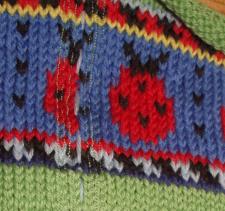 Still why did they have me start the dang pattern where they did? Starting at a different point would have centered the pattern. I even scrutinized a sample ladybug sweater at my LYS and the pattern's not centered under the neck on theirs either. Can anyone help solve this mystery?