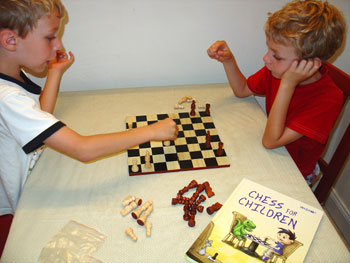 today: playing mini-chess games from the most excellent book, Chess for Children