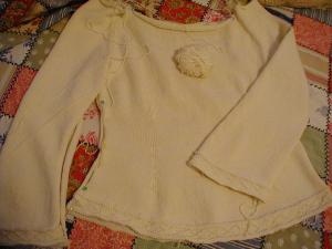 - elizabeth III, in progress since Fall 2001. I have reknit the front and back (again!) and still need to rip out the sleeves, reknit them, sew it all up again, and pray!