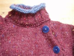 It was so nice of everyone not to notice (or remark on) the totally missing buttonhole on the neck of giranimals #2. Here's a look at giranimals #1 again and a close-up of the neck with obvious buttonhole. It seems that six months ago when I did the knitting on the second jacket, I, whoops, forgot to put a buttonhole in the neck! Elizabeth Zimmerman to the rescue. One little snip and some some quick seaming and you got yourself a buttonhole. No one will ever know.
