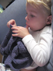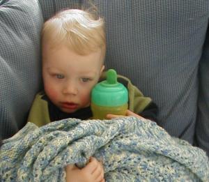 And can I just say that we could all use a little good karma (or good anything) around here, since we've had sick babies for the last few days. At least the blankies that I knitted for the boys turned out good for snuggling.