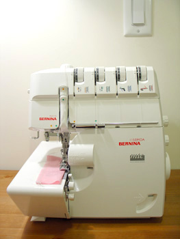 I set aside a couple of hours last night to figure out how to thread the thing and sew, er, serge a seam or two. I'd once watched a serger how-to video that made the whole threading thing seem shockingly complicated, but I had this lovely, delightful little machine threaded for the first time in mere minutes. And the test seam was like buttah!