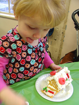 This is wee's new favorite (and cutest) thing to say. In the last few days she has declared her graham cracker house to be "boo-ful".