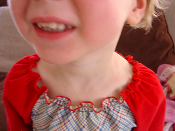Wee's new dress, ready just in time for Christmas! When I cut this out (which, I should admit, was last year!), I had no idea it was a Christmas dress. But now that it's finished, it seems so Christmas-y.