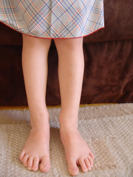 The size 4 fits her perfectly: an elastic waistband and pant legs you can cut to the right length make them easy to sew to fit; and while the top is a little roomy, the length is just right for my little giant.