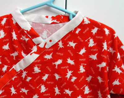 Wee, who hates trying anything on, was like a different kid when I was finishing these, coming to watch me sew the final seams and jumping for joy when it was time to put them on. She loves the tiny little Olivias all over the fabric and will spend whole minutes staring at her top to find Olivia on her scooter or Olivia wearing her tutu.
