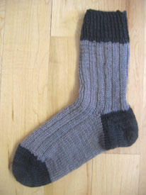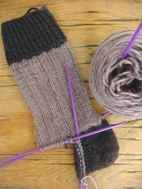 I'm knitting these socks from the leftovers of the Shepherd Sport I used for the two pairs of tech guy socks. I had about 3/4 of a ball extra in each color and am hoping that it's enough to make two socks. Pretty please?