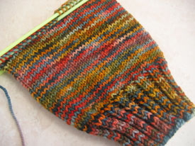 My holiday list of 7 pairs of socks, 1 scarf, and 2 hats has a half a checkmark on it, as B's kool-aid hat is all knitted but still needs a lining. S's red hat is underway, so that's like a quarter checkmark. Woo hoo, that's 3/4 of a checkmark all together! Of course, I've just added 2 more scarves to the list, so I'm actually 1 1/4 checkmarks down now. Hmmm, maybe this keeping track thing isn't such a good idea after all. (Heh, heh.)