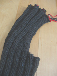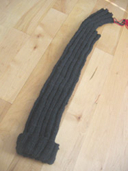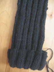 One weekend on the job and the elves have already finished one holiday knitgift. And yes, this one is really done, not merely almost done, like the boys lining-less hats or hubby's still plain tech guy socks!