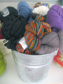 Here's my sock pot, full of yarn for holiday socks. There's six pairs in there - one Koigu, two Lorna's Laces Shepherd Sock, and three in Lorna's Laces Shepherd Sport (so glad that I went sport weight for at least half of these babies!) - all waiting for the elves to dig out the dpn's and work up their courage.
