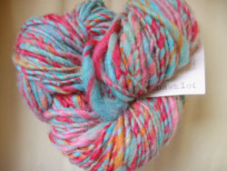 And since I used up all my misshawklet yarn, I had a friend pick me up some more of her funky handspun at Boston's Bazaar Bizarre this weekend. It's crazy cool!