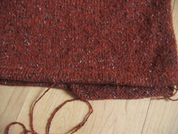 Doesn't it look done that way? This is how it really looks though. Still the last sleeve to finish and sew in and the bottom edging to complete.