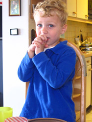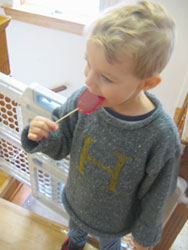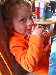 I woke up this morning to choruses of 'do you remember this game from yesterday?', 'can we play this game again?'. As a matter of fact, yes, I do vaguely remember something about a three an a half hour game marathon yesterday. After a few more games of Kinder of Catan this morning (one which was pretty heavily thrown B's way), SpongeBob has finally relieved me of my duties. So I can get back to cleaning, blogging, laundry and, if I'm lucky, knitting.