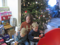 Before going downstairs to open the presents, the boys and I pulled on our weasley sweaters. I'm thinking of keeping it as a new tradition for Christmas - wearing weasley sweaters, or handknit sweaters to open gifts.